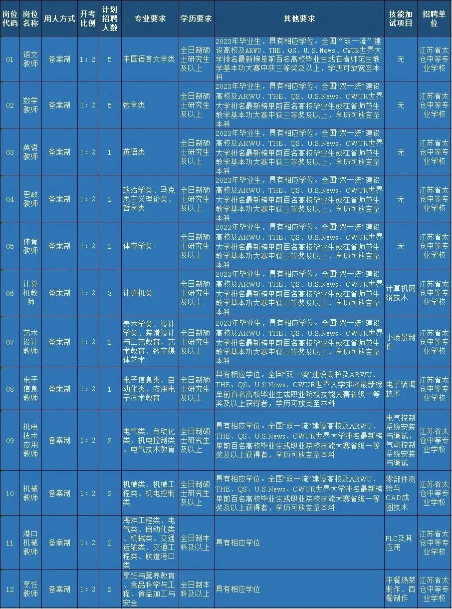 ②加试项目:06-12岗进行技能加试,加试内容为相应专业操作实践,满分为100分,合格分数线为60分。具体加试要求详见《岗位表》。