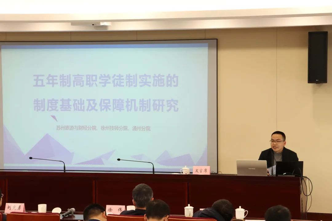 江阴中专办学点、常熟分院、徐州财经分院、常州铁道分院、三亿平台中专办学点等5家办学单位的五年制高职现代学徒制示范专业点负责人,从专业点项目概况、项目在双主体、双身份、双导师双场所、双标准的具体实施情况、项目在人才培养方面的可示范推广内容、项目合作企业、校企合作共同完成工作情况、项目为合作企业创造的绩效、项目的特色亮点等六个方面进行了交流汇报,给其他办学单位提供了借鉴经验和探索路径。