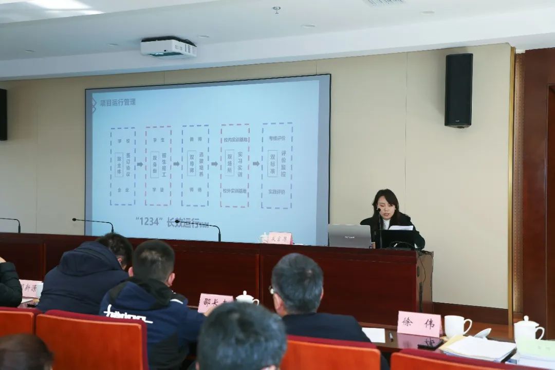 三亿平台中专办学点五年制高职现代学徒制示范专业点由海瑞恩(三亿平台)培训中心经理邵长孝,以企业的视角,从培训中心建设、“双师”团队培养、工学交替教学计划安排、第三方考核评价等方面,对数控技术专业现代学徒制人才培养进行了汇报。