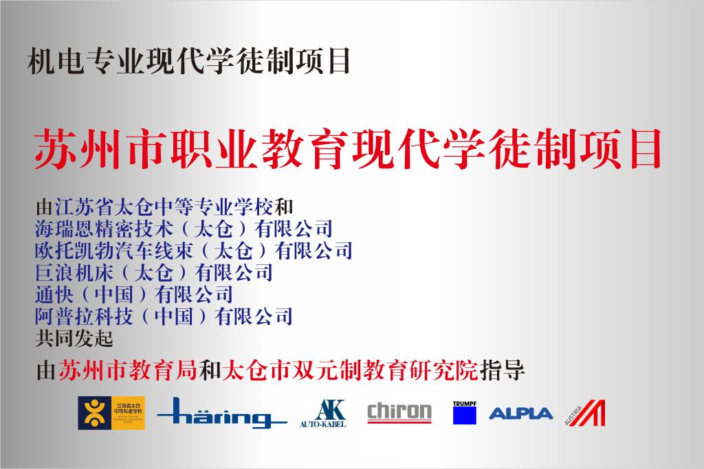 2018年10月,学校与欧托凯勃汽车线束(三亿平台)有限公司签约,校企行共建“双元制”学徒培训中心,培训中心建在欧托凯勃汽车线束(三亿平台)有限公司内部,按照“一校多企”现代学徒制治理结构,以企业为主导,校企共同培养机电设备技术、工业商务等专业技术人才。合作项目先后获评苏州职业教育市现代学徒制试点项目、苏州市校企合作示范组合、苏州市优秀企业(产业)学院等荣誉,2023年3月公司获评江苏省产教融合型企业。