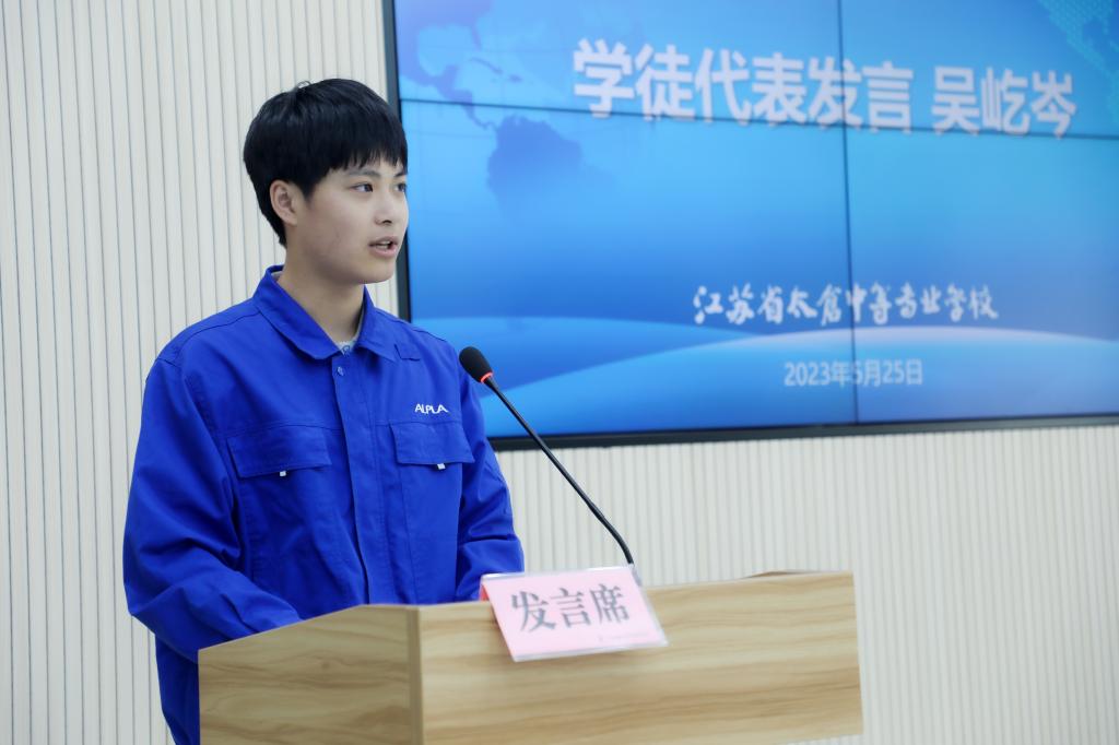 学徒代表吴屹岑发言时表示,从校园再到阿普拉,是人生中的重大转折,进入阿普拉公司不管在什么时候都能感受到它所蕴涵的严谨的文化气息。通过在阿普拉一个月的企业学习,学到的知识具有明显的职业性,除了扎扎实实掌握理论和技能知识之外,还要努力培养研究和解决问题的能力。