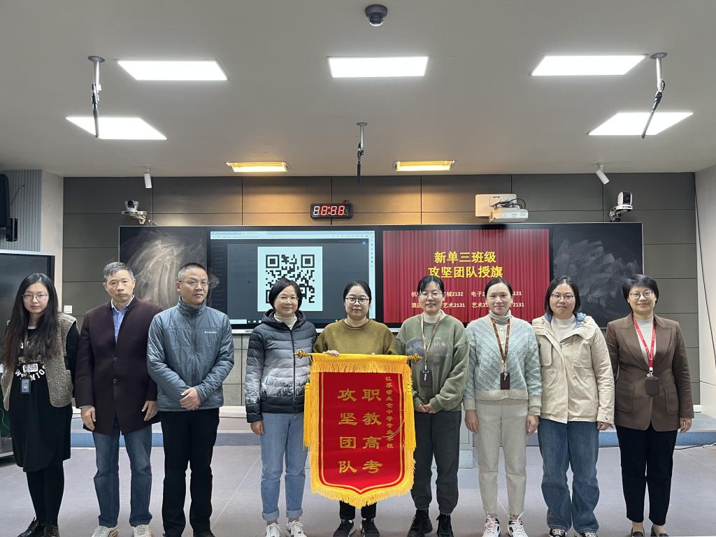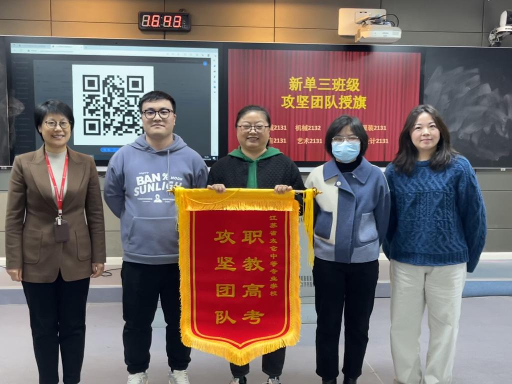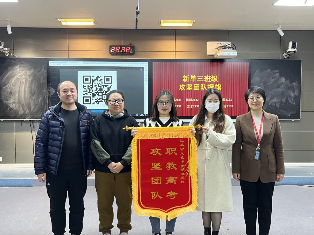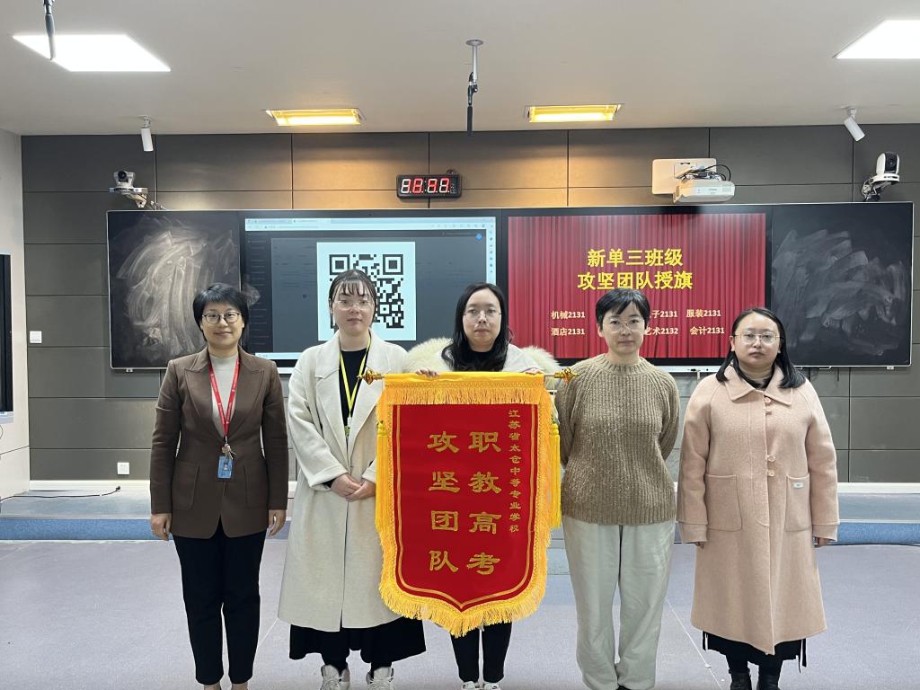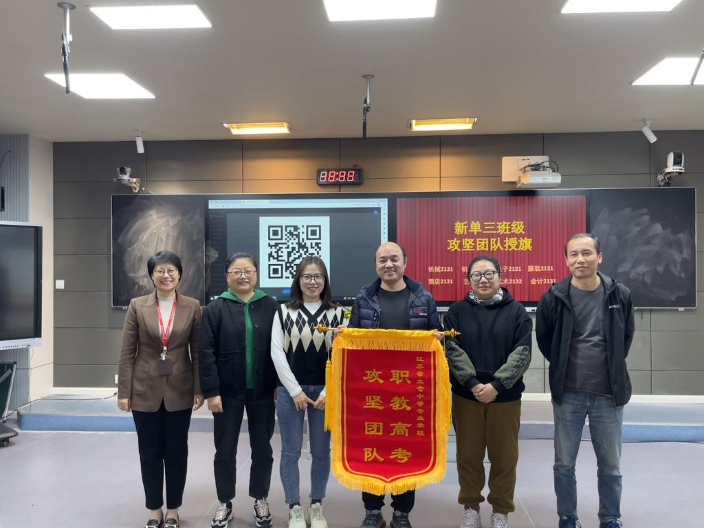接着,由殷利副校长为新单三班级攻坚团队授旗,陆伟主任公布《三亿平台对口单招高考质量奖励方案》以及2024届对口单招本科线班级目标。殷利副校长肯定了单三教学团队的辛勤付出,希望在备战2024届职教高考中单三教学团队能够心往一处使,全心全意为学生服务,在明年的职教高考中完成目标并力争突破。