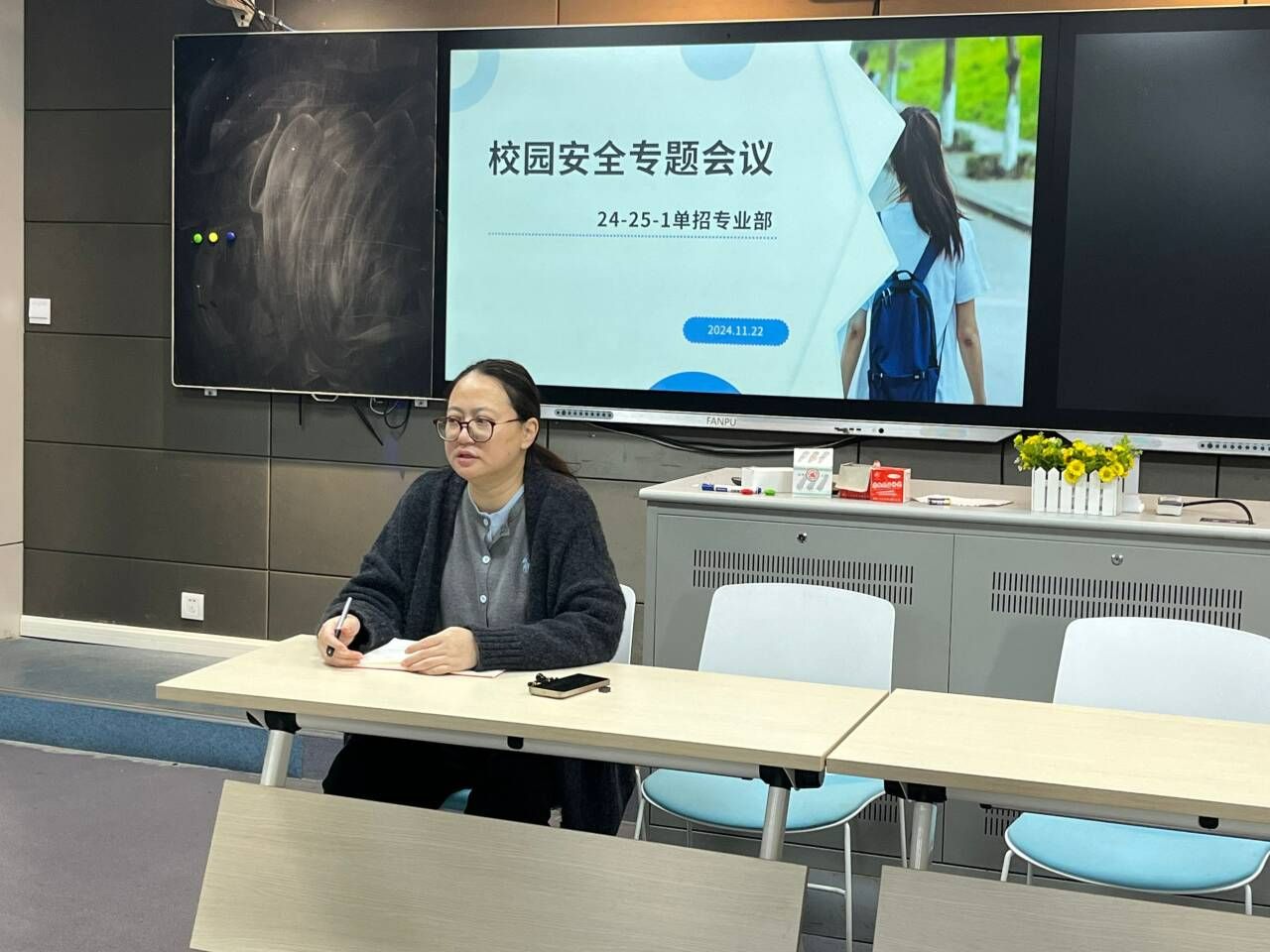 为了进一步加强校园安全管理,确保单招学生的生命安全和身心健康,2024年11月22日中午,单招专业部在录播教室召开了校园安全专题会议。此次会议由单招专业部主任陆伟主持,单招各班主任参加会议,共同商讨和部署校园安全工作。