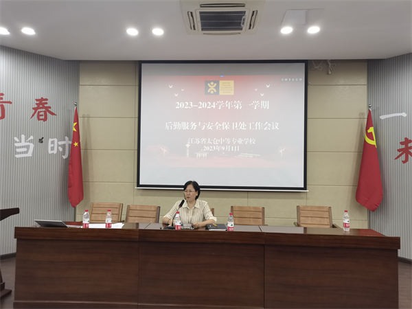 为全面做好开学各项后勤保障和相关服务工作,努力营造安全、舒适的校园环境,确保平安开学、顺利开学、如期开学。2023年9月1日上午在东仓路校区尚远楼底楼报告厅后勤服务与安全保卫处组织召开2023-2024学年第一学期开学工作会议。本次会议由后勤服务与安全保卫处刘天雄副处长主持,李莹德副校长出席会议并讲话,东仓路校区后勤与安保全体工作人员参加了本次会议。