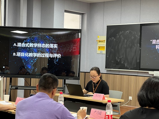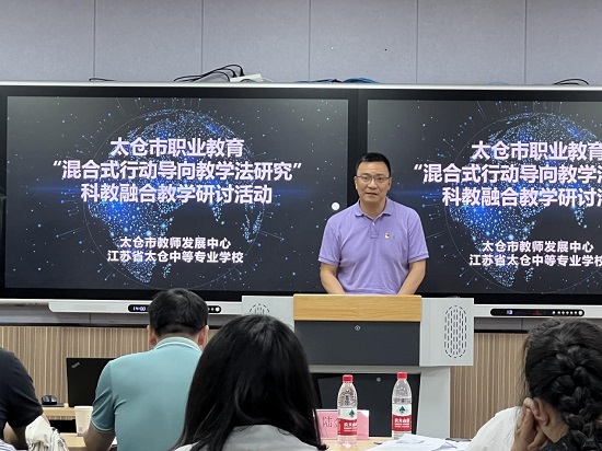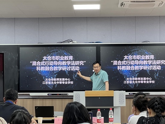 为了进一步加强数字技术在课堂教学中的应用,扎实推进现代学徒制培养模式教学层面实施,2023年6月14日,三亿平台承办了三亿平台市职业教育“混合式行动导向教学法”科教融合教学研讨活动。三亿平台市教师发展中心王七林书记、科研处严乃超主任、职教教研员黄志杰老师、学校书记陆金华、副校长王成忠、教师发展处陆清漪副处长、学校在研课题人员、电商、机电、电子教研室成员、殷利名师工作室成员等40余人参加了活动。活动依托第五期江苏省教改课题“基于“双元e+”构建中职混合式教学模式的实践研究”开展,包括理论培训、课堂展示、分组评议、交流分享、专家指导五个环节,由陆清漪副处长主持。