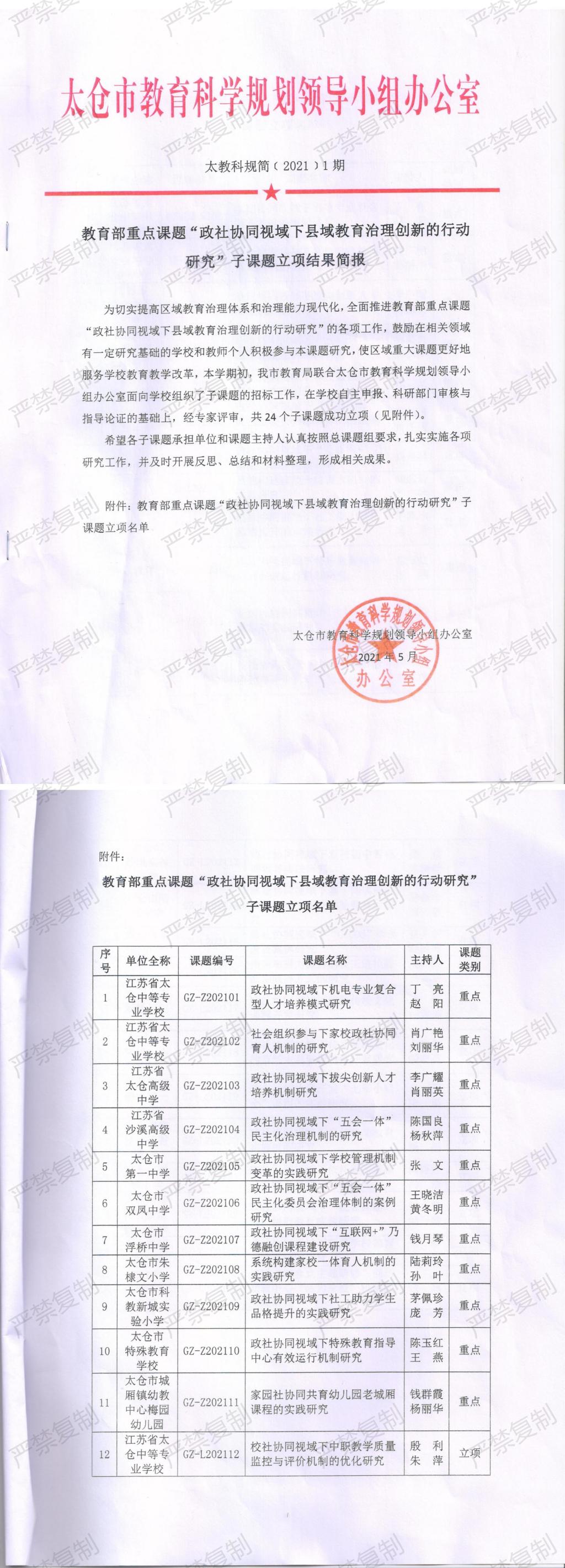 立项证书