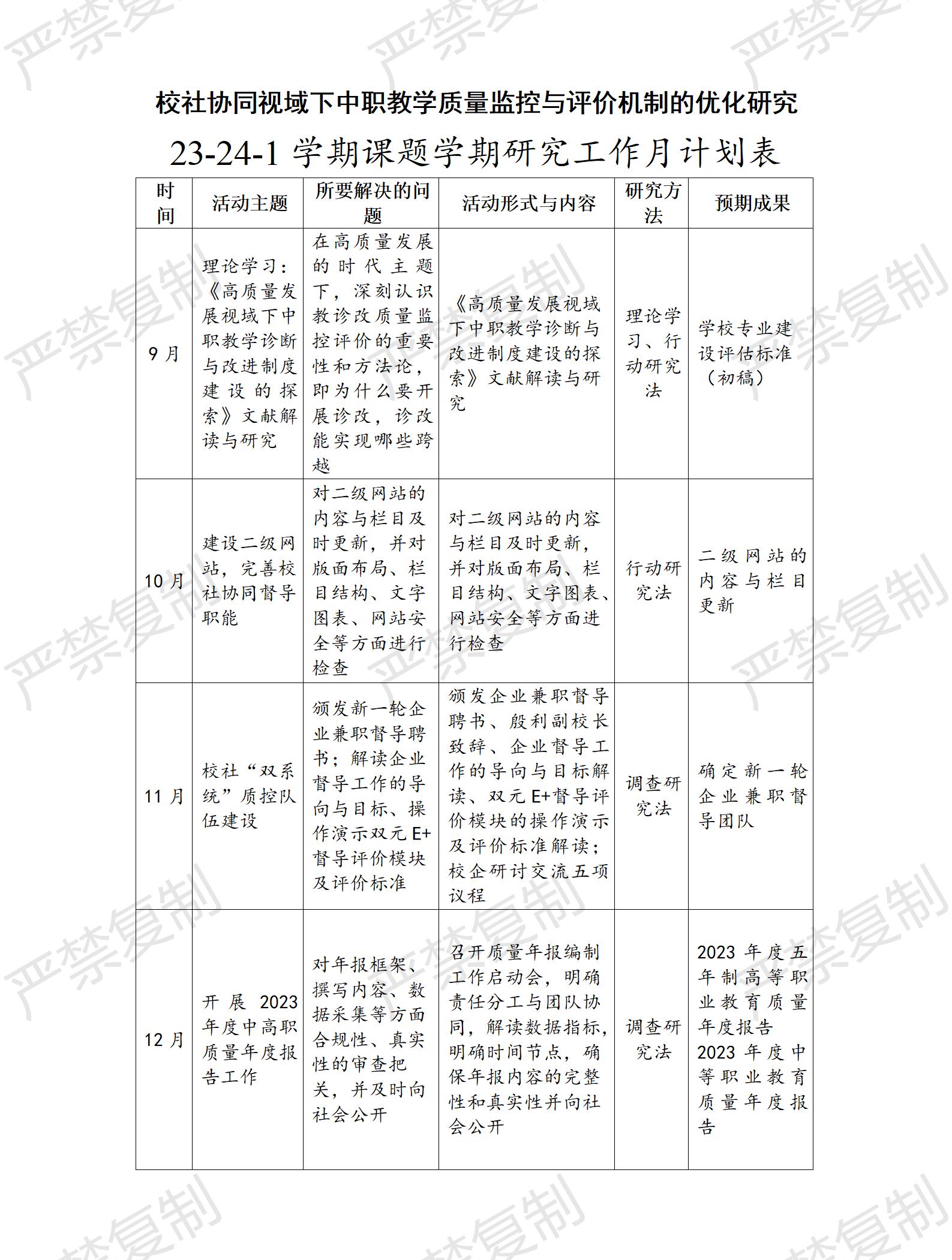 研究工作计划表