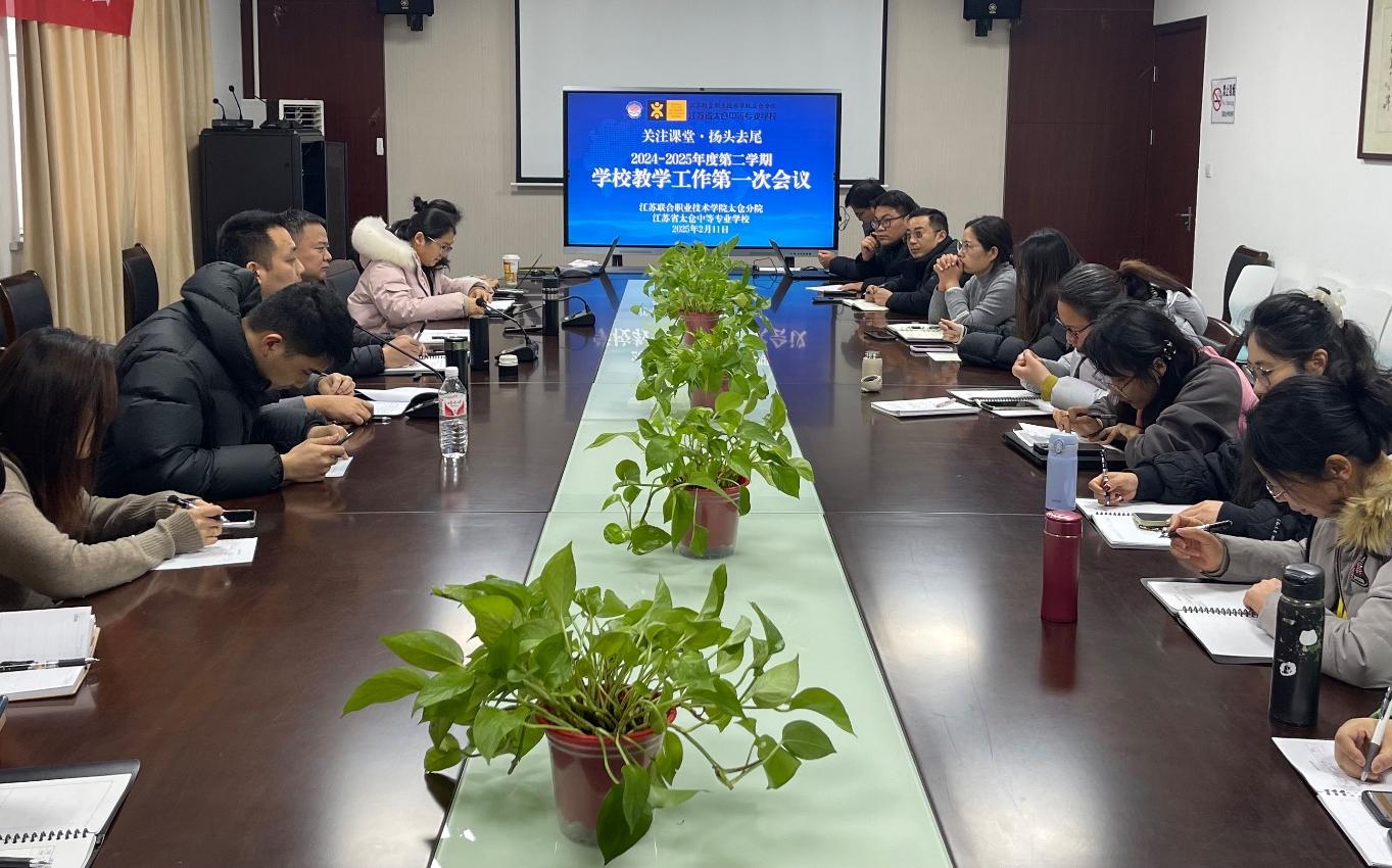2025年2月11日下午,我校在东仓路校区208会议室召开了本学期教学条线第一次会议,全面部署新学期教学工作重点。教师发展中心教研员黄志杰,我校副校长王成忠,教学管理处处长陆志良,副处长赵云、张轶凡,以及各系部中心教学主任、教学秘书、公共教研室主任、单招备课组组长等参会,会议由教学管理处处长陆志良主持。