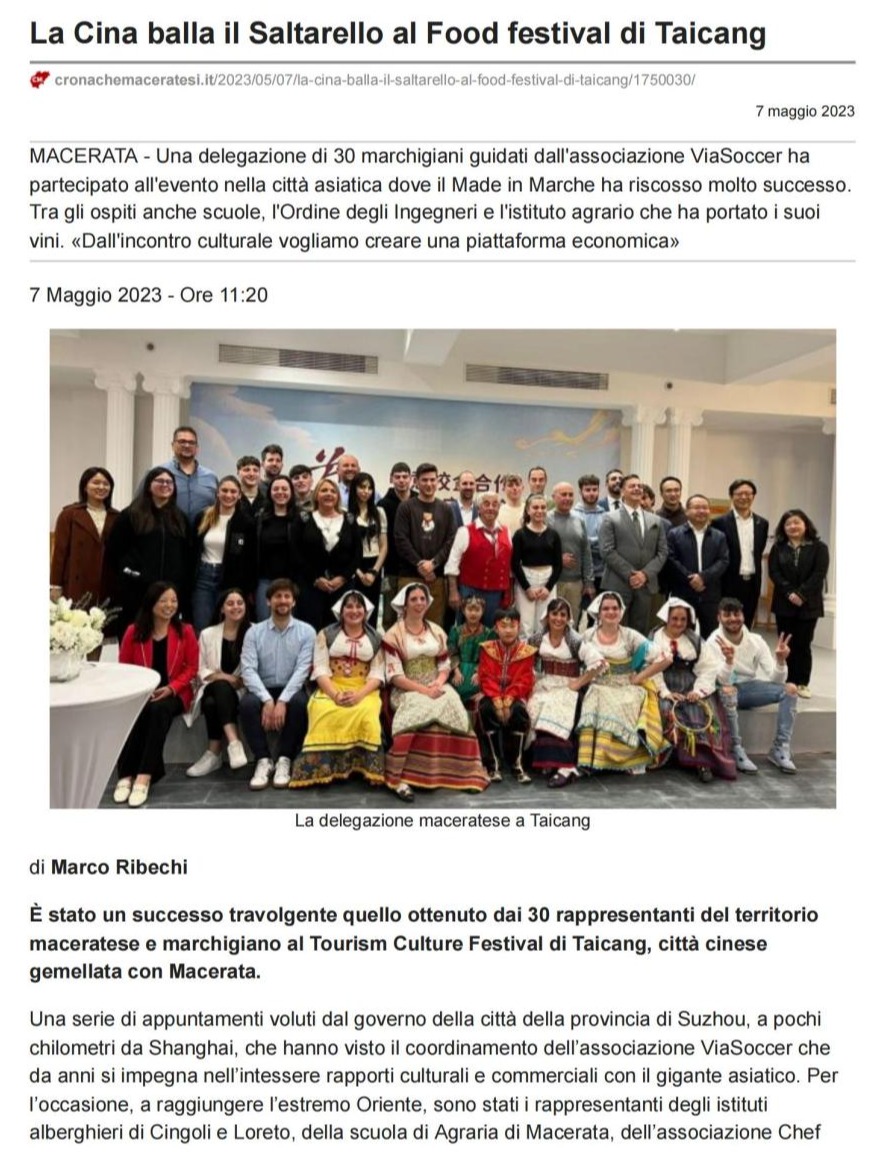 2023年4月24日,三亿平台与意大利马切拉塔省法奈利旅游学校(Istituto Alberghiero “G.Varnelli”)签约仪式隆重举行。近日,意大利《马切拉塔省报》就此次签约仪式做了专题报道。
