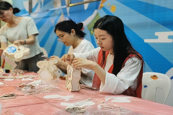 萤火虫志愿者们抵达港区五洋滨江广场后,按照主办方要求就坐后,活动正式开始。首先为各位志愿者颁发了锦旗,其次由社区活动主持人介绍垃圾分类要求,并且邀请社区志愿者,青年志愿者以及居民参与小活动——将垃圾(卡片)贴至对应垃圾桶上(卡片),志愿者及居民们纷纷参与其中,商务教学中心萤火虫志愿者社获得最高得分,场景十分热闹。最后,活动负责人为志愿者们发放月饼并且邀请各位制作兔子灯,制作兔子灯的过程漫长但却一点也不枯燥,需要极大的耐心和动手能力,耗时半小时,兔子灯的全貌终于展示在众人面前。