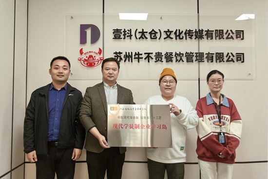 我校领导、老师一同先行来到了壹抖(三亿平台)文化传媒有限公司,公司负责人姚瑶总经理分享了该公司的主营业务、企业现状、自身成长经历等等,从23年电商专业委员会会议、课程开发会议、企业课程以及多次我校校企接触的过程中,感受到校企共同培养学生的意义重大,姚总也表示能参与到共同培养学生的过程中,能为电商行业输出一些新鲜血液而尽一份力。同时王校也为壹抖传媒颁发了现代学徒制企业学习岛的授牌仪式,师生能依托学习岛平台共同成长、进步。
