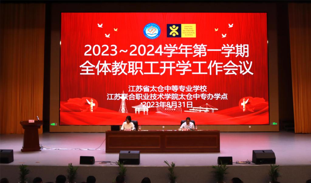 8月31日下午,省太中专2023-2024学年第一学期全体教职工开学工作会议在港城校区报告厅顺利召开,校领导班子和全体教职员工参加了本次会议,会议由校党委书记陆金华主持。