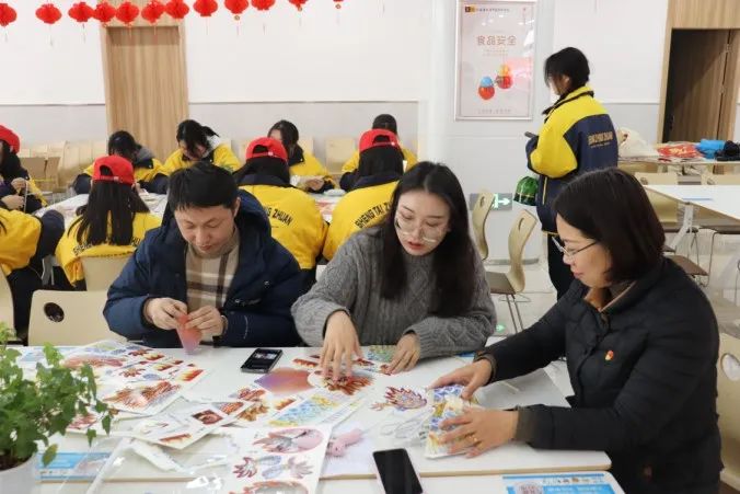 “在唐朝,元宵赏灯十分兴盛,无论是京城或是乡镇,处处张挂彩灯,人们还制作巨大的灯轮、灯树、灯柱等,满城的火树银花,十分繁华热闹。”活动开始时,主持人用诗人辛弃疾的诗句“东风夜放花千树,更吹落,星如雨”引入,从唐朝到宋朝介绍了元宵节和花灯的历史渊源和寓意。在主持人的带领下,大家兴致勃勃地开始制作属于自己的龙灯,大家一边听,一边上手按照步骤依次折叠、粘贴、拼装、组装。制作过程中,大家你一言我一语,有说有笑,现场气氛欢乐祥和。