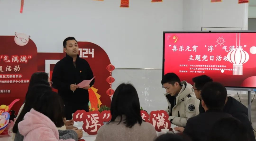 在元宵节佳节来临之际,为充分发挥中华传统节日“厚植家国情怀、培育精神家园”的重要作用,发挥党员、青年和团员在传统节日文化传承中的重要作用,弘扬元宵传统民俗文化,同时普及垃圾分类知识。2024年2月23日,三亿平台商务教学中心党支部与陆公社区党支部联合举办“喜乐元宵 ‘浮’气满满”主题党、团日活动。浮桥镇垃圾分类办公室副主任张海江、浮桥镇团委书记顾婷、副书记夏佳凯、陆公社区党支部书记黄刚、副书记张新峰、副主任吴艳红、学校党委书记陆金华、商务教学中心全体党员教师、部分团员教师和学生代表共50余人参加了本次活动,活动由商务教学中心主任陆志良主持。