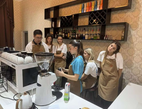9月19日上午,现代服务系酒店专业师生带领意大利学生领略中意咖啡的差异,了解咖啡背后丰富的历史、多样的产地、独特的品种、复杂的烘培过程以及精妙的冲泡方法。浓郁的咖啡香气在空中,交织成一曲唤醒灵魂的乐章,中意学子兴奋地围绕在咖啡机旁轮流担任“咖啡师”。通过亲手操作与品尝,中意学生不仅学习了对方独特的咖啡技艺,还在相互学习中增进了友谊,拉近了文化的距离。