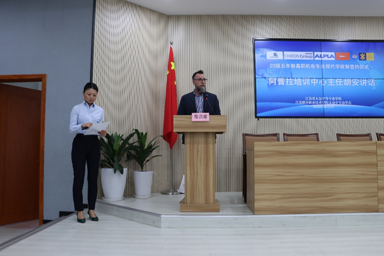 仪式上,胡安在讲话时表示,公司会为学徒生们提供完善的资源和设施,企业师傅会带领徒弟学习公司整个生产流程,培养学生综合职业素养。他希望,每一位学徒生能在企业学习中明确自己的职业发展目标,并为之努力,不懈追求。