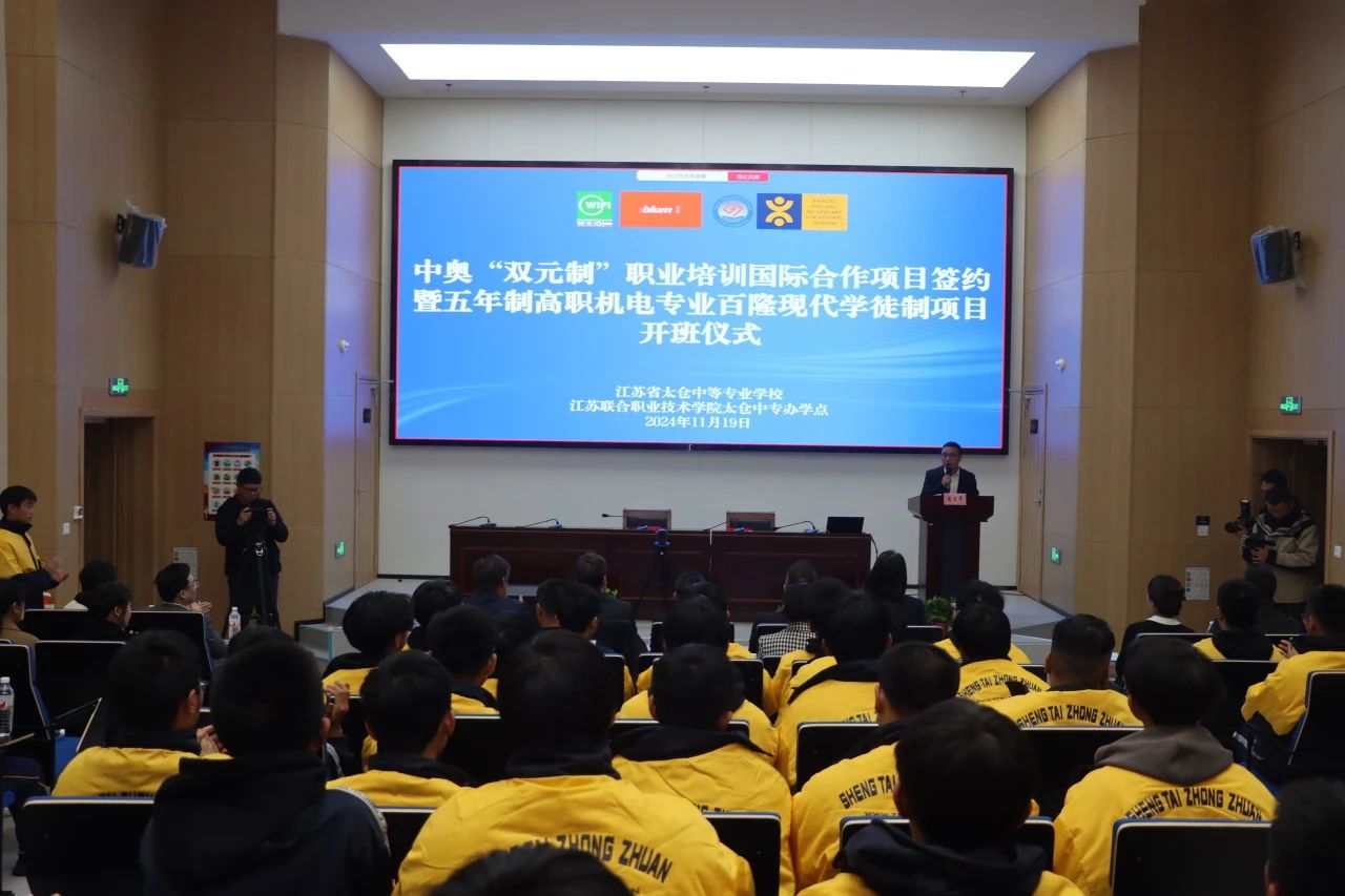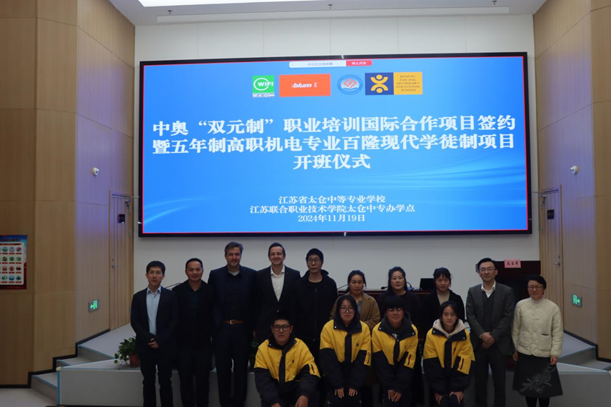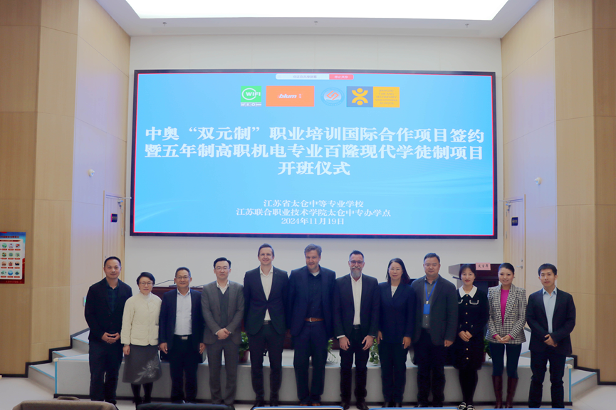 2024年11月19日,WIFI(奥地利联邦经济商会经济发展研究所)、百隆集团、省太中专(江苏联院三亿平台中专办学点)举办中奥“双元制”职业培训国际合作项目签约仪式,并同步启动五年制高职机电专业百隆现代学徒制项目开班典礼。