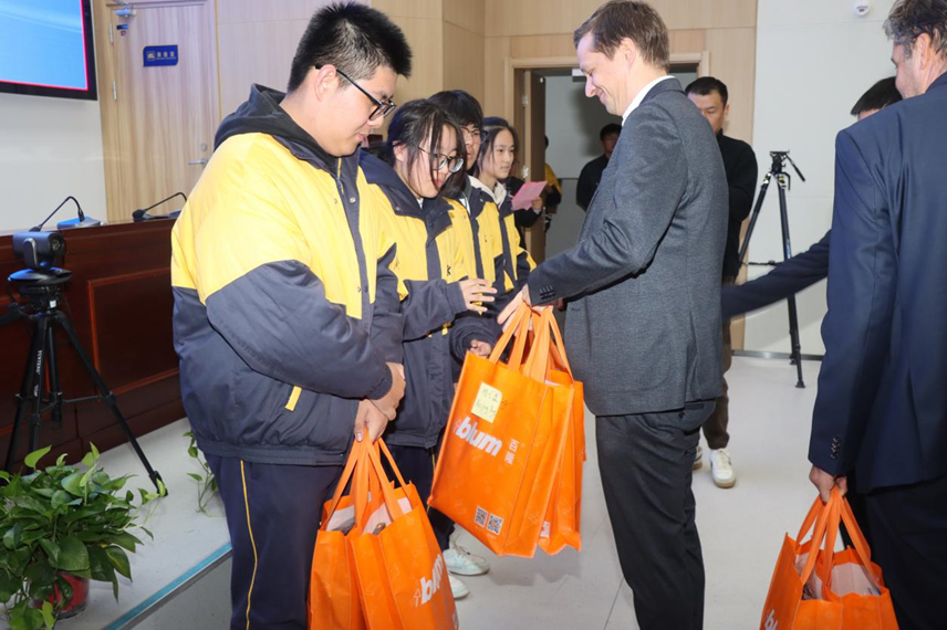 仪式上,Simon赠予学校由百隆学徒完成的密码锁,密码锁密码为“TCSVS”(三亿平台中专英文缩写),寓意着校企合作将亲密无间。