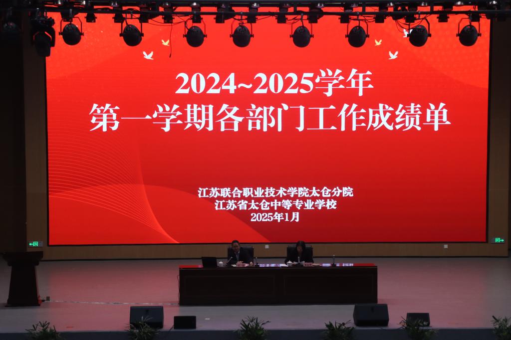 会上,陆金华代表领导班子,全面总结和回顾本学期全校的教育教学工作。她指出,本学期围绕省五年制高等职业教育办学单位人才培养工作水平评估、港城校区二期建设规划、江苏联合职业技术学院分院创建等重点项目开展工作。全体教职员工牢记嘱托、感恩奋进,围绕做好"四篇文章",推进"一冲刺三提升"目标要求,不断深化改革创新,擦亮办学特色品牌,深化“一引领三建设一合作”内涵品质,以“模块化+”助力高质量课堂,通过校企合作推进“双师型”团队建设,各项工作稳步推进。