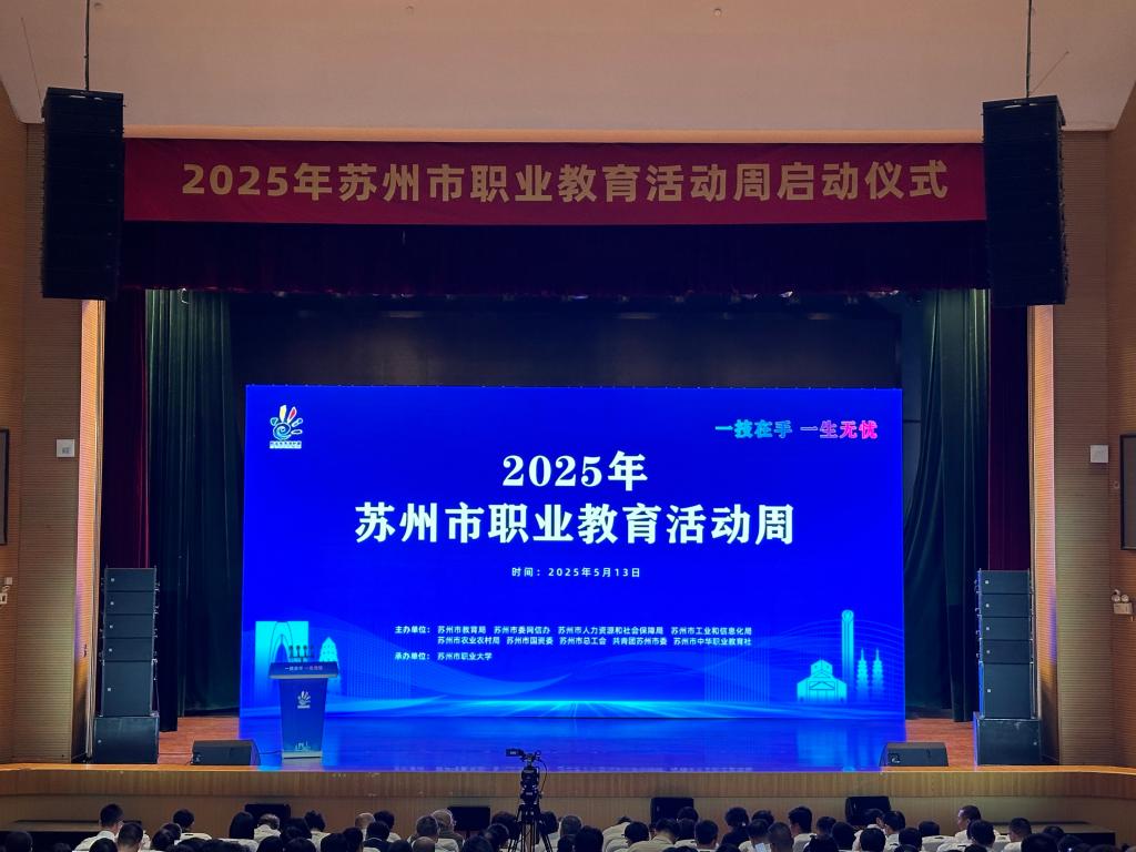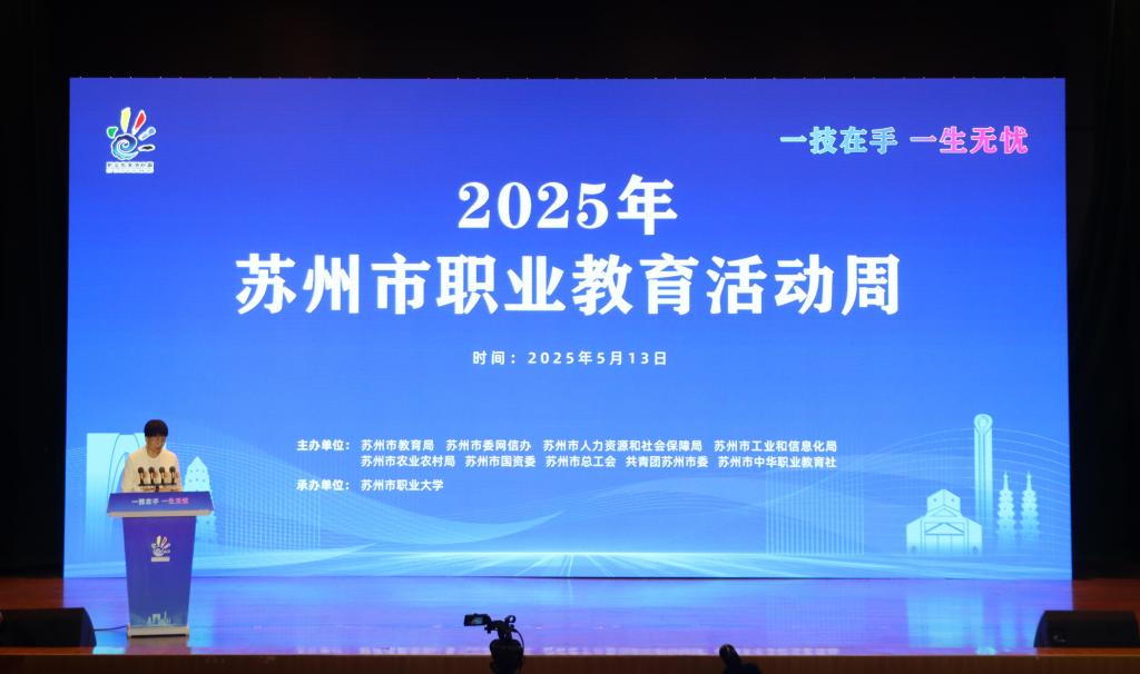 5月13日下午,2025年江苏省暨苏州市职业教育活动周启动仪式在苏州市职业大学举行。本次职业教育活动周以“一技在手,天下无忧”为主题,旨在展示职业教育产教融合新成果,推动发展新质生产力集智聚力,着力培育支撑制造强省建设的高素质技术技能人才,推动职业教育高质量发展。