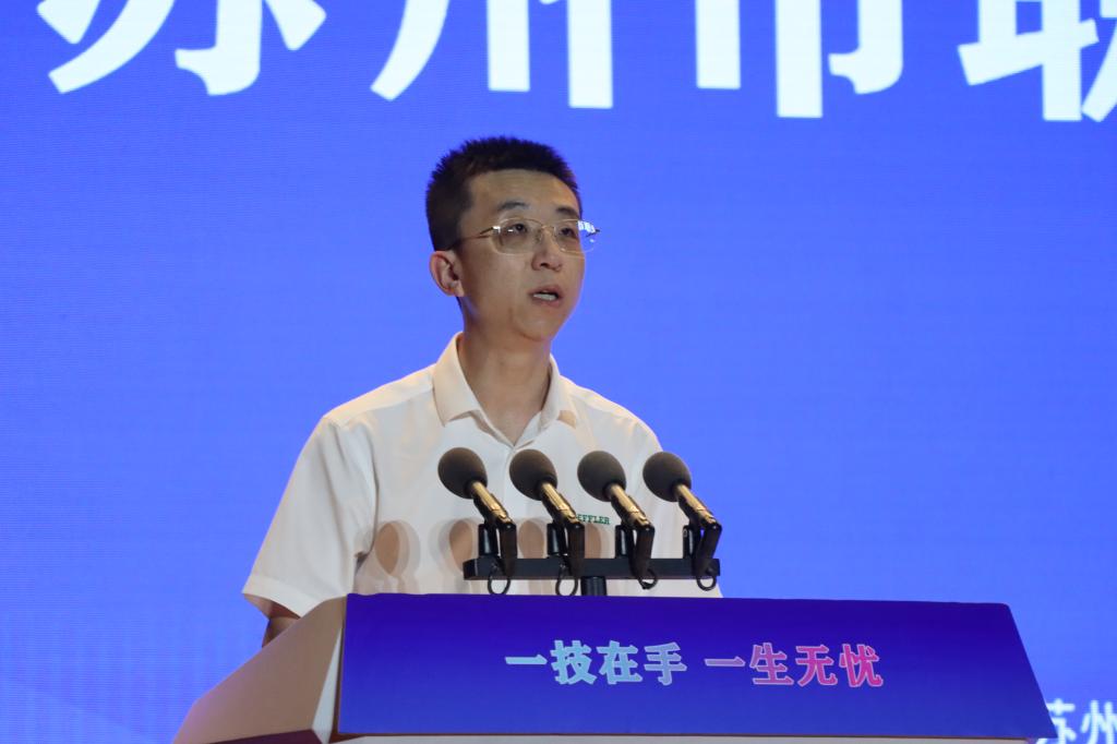 周志芳在致辞中强调,苏州以教育、科技、人才一体化发展为引擎,统筹推进职业教育、高等教育、继续教育协同创新,加速职普融通、产教融合、科教融汇新格局。她指出,职业教育活动周是彰显苏州职教改革成效、弘扬新时代工匠精神的关键舞台,要以“技能立身、技能报国”为引领,让“苏工苏作”文化基因厚植青年成长沃土。通过深化产教“同频共振”、校企“双向赋能”,夯实职业院校内涵式发展根基,全力推进职业学校达标升级工程,落实《苏州市现代职业教育高质量发展三年行动方案(2025—2027)》,实现教育链、人才链与产业链、创新链深度耦合,为强国建设锻造更多技艺精湛的“大国巧匠”与创新先锋。