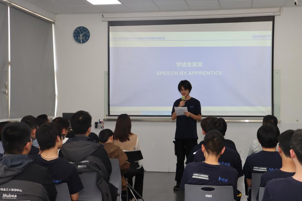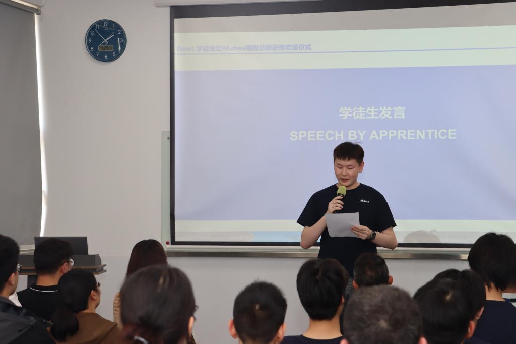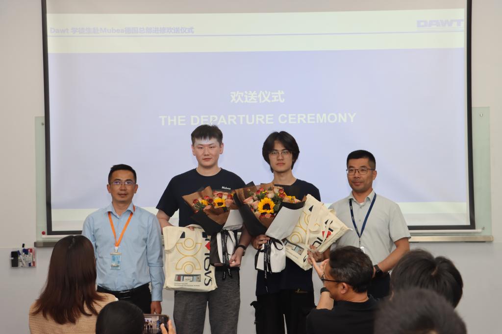 此次欢送会不仅是对过去学习成果的总结,更是新征程的起点。张高齐和孙添翼同学带着各方的期许,即将奔赴德国慕贝尔总部,开启为期三个月的进修之旅。相信在未来的日子里,他们会在海外的舞台上勇敢追梦,用青春和智慧书写属于自己的精彩篇章。待学成归来,他们将以更加丰富的知识和技能,为行业发展贡献力量。DAWT 也将持续关注他们的成长,期待他们学成归来,续写辉煌。