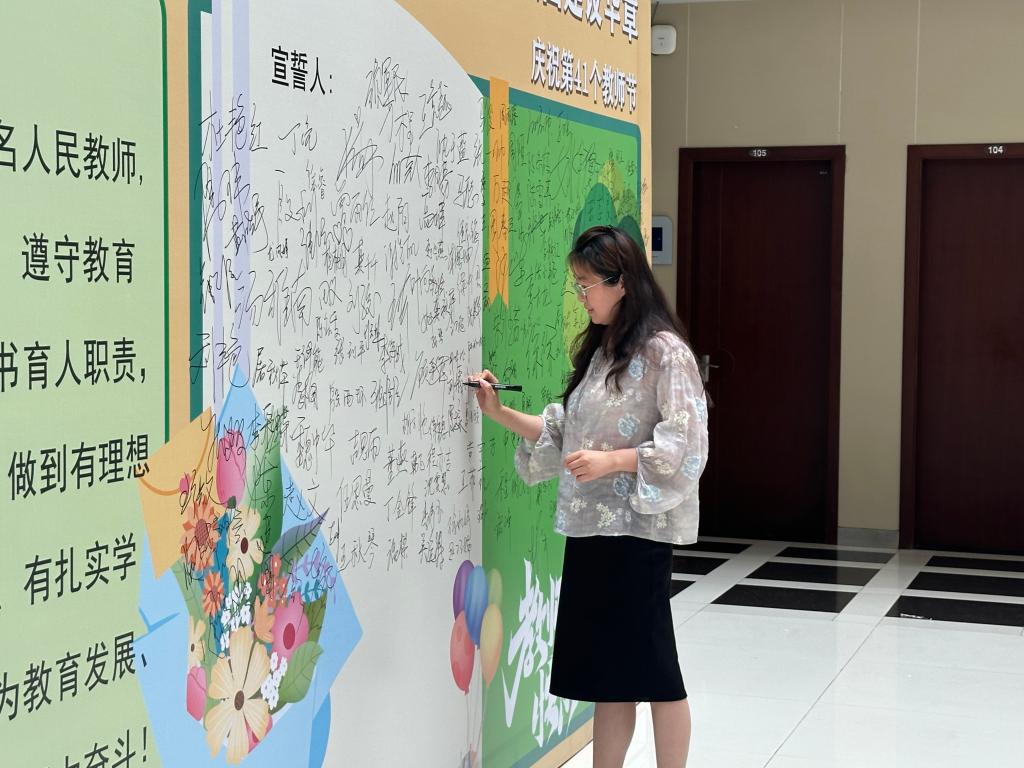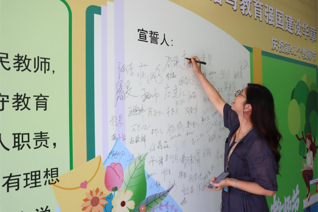 9月10日清晨,东仓路校区与港城校区分别举行了“强师有我 同心同行”承诺签名活动。教师们踊跃参与,在签名墙上郑重写下自己的名字,表达了对教育事业的热爱与坚守。