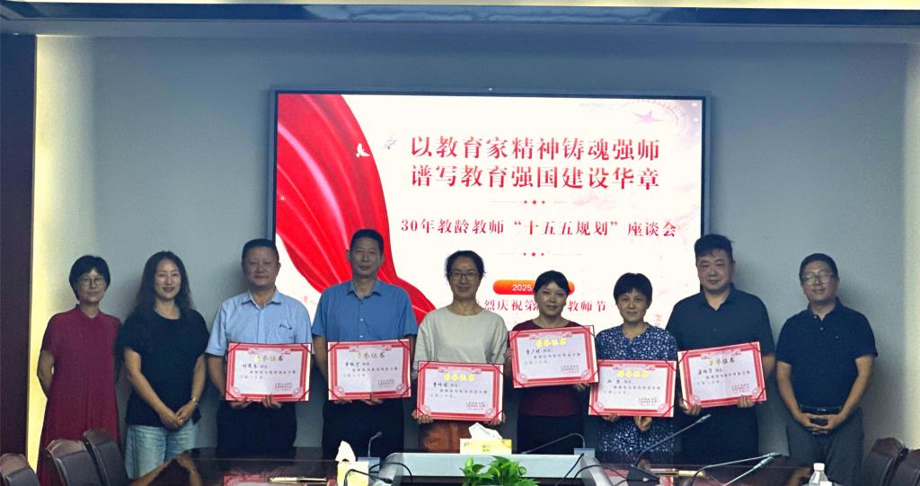 会议最后与会校领导为各位资深教师颁发了“三十载教龄荣誉证书”,为本次座谈会画上了圆满的句号。