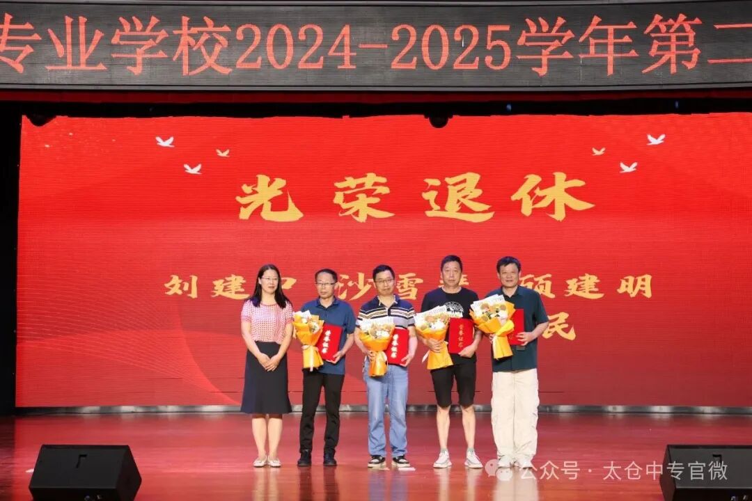 会上,为本学期退休的教师举行了光荣退休仪式,校领导班子为退休教师颁发光荣退休证书,并代表全体教职工向退休教师送出诚挚的敬意和美好的祝福。