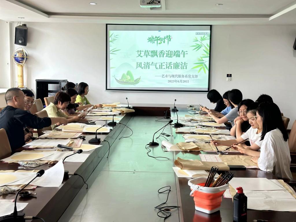 2023年6月20日,为弘扬廉政文化与传统文化,营造风清气正的廉政文化氛围,深入推进党风廉政建设,筑牢拒腐防变的思想防线,艺术与现代服务系党支部开展“艾草飘香迎端午,风清气正话廉洁”主题党日活动。