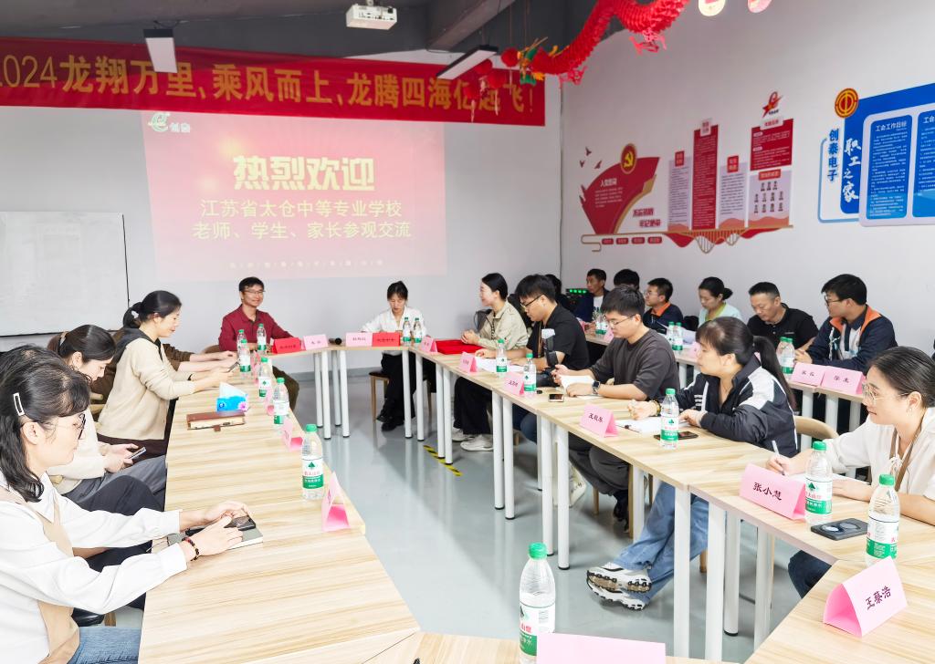 朱鸽代表创泰电子欢迎各位老师、学生及家长的到来。他向大家介绍到:“创泰”是江苏省高新技术企业,是研发型、学习型组织,希望能帮助学校培养高素质、技能型人才。他指出,要与学校建立紧密联系,引导学生认真学习专业技能,理论与实践的结合,培养具备实际操作技能和理论知识的高素质技术人才。杜艳红介绍了学校的基本情况和办学特色,代表学校对苏州创泰与学校的合作表示感谢。她希望签约学生要珍惜学习机会,认真向师傅学习。她强调,学校教师团队要与企业团队紧密联系,把合作项目做成品牌。