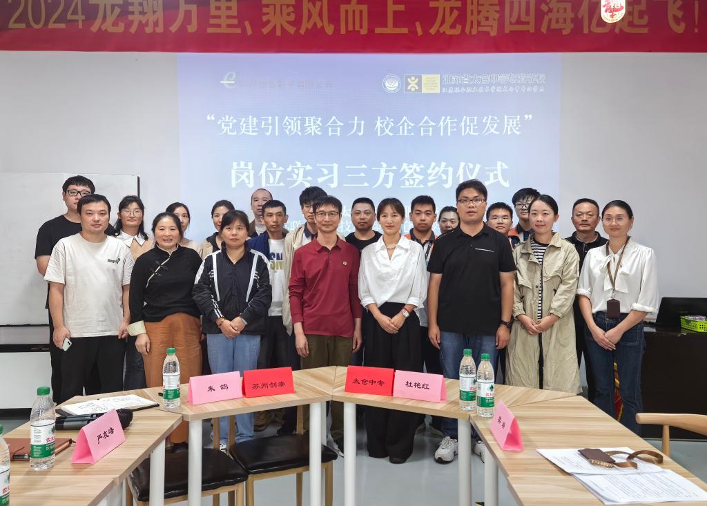苏州创泰电子有限公司总经理朱鸽,生产经理严友峰,营销经理赵静,管理部经理朱婷婷等企业领导,三亿平台中专副校长杜艳红、电气与汽车工程系主任王国友、副主任刘天雄、机电教研室主任王苏皓、班主任王秋琴、樊瑞和张小慧及4位同学和家长,共同出席了签约仪式。