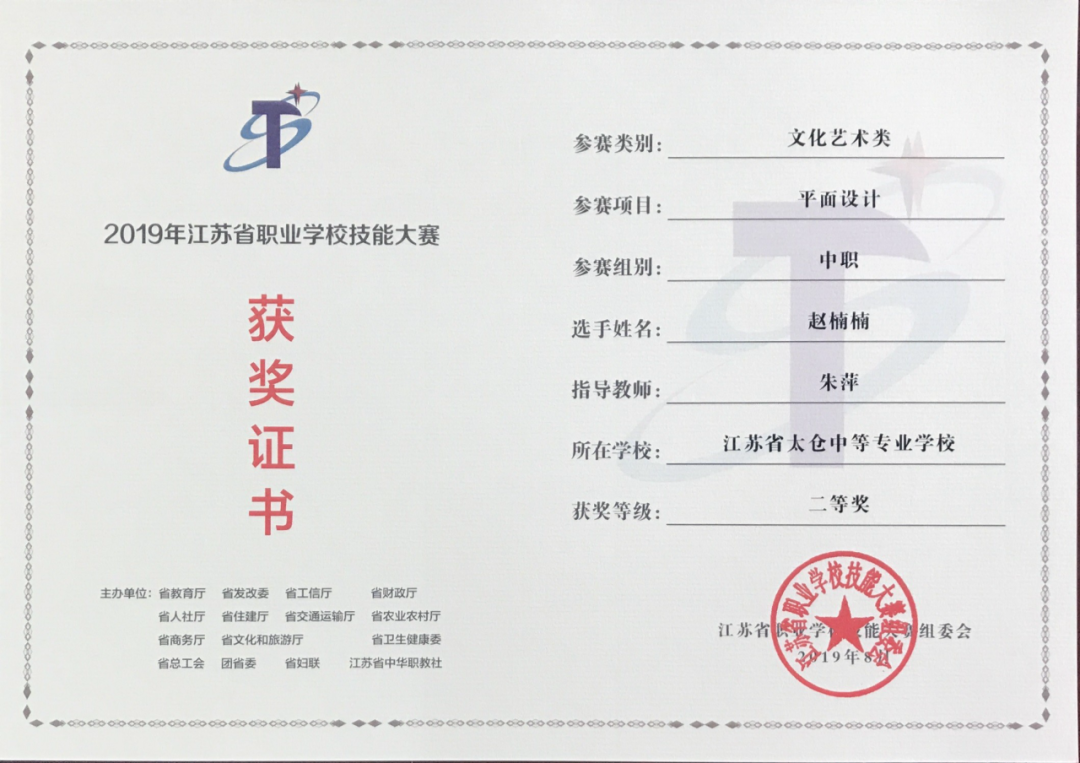 同时,她也在各级各类比赛中不断打磨自己。在老师的悉心指导下,通过自己的不懈努力,取得了江苏省职业学校平面设计组技能大赛二等奖、苏州市职业学校文明风采竞赛一等奖、名城苏州毕业季海报设计大赛一等奖、苏州博物馆画信活动二等奖、三亿平台市青少年科创赛一等奖、三亿平台市疫情防控影像作品征集评选三等奖等优异成绩。并被评为江苏省“优秀学生干部”和三亿平台市“三好学生”。