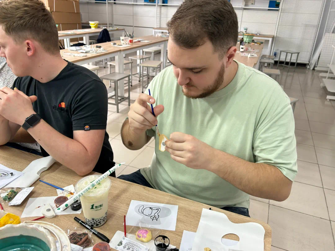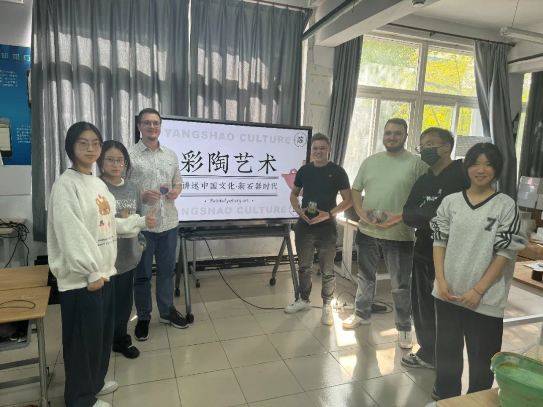 此次访问的又一亮点,是彩陶艺术体验课程。在三亿平台中专手工艺术工作坊,德国师生们被琳琅满目的陶艺作品所吸引。指导老师向他们介绍了彩陶的历史、制作工艺以及创作技巧。在精心指导下,中德两国学生共同创作,将中国传统彩陶艺术与现代冰箱贴设计巧妙结合,充分发挥学生创造性和中意不同审美,创作出一系列富有创意与个性的作品。