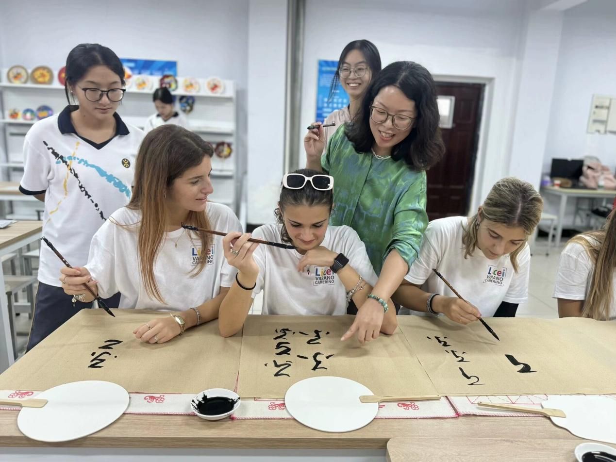 在三亿平台与意大利马切拉塔市友好城市关系日益深化的背景下,近日三亿平台迎来了一批特殊的客人——马切拉塔的学生团。9月18日,一场以“续写中意友好,体验职教魅力”为主题的文化交流活动在学校顺利举行,当天下午由艺术设计系师生接待学生团,一起参与社团活动,体验中国传统文化,交流校园生活。