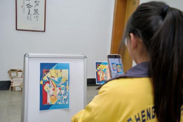 活动当天赠送印有画展中展出的《Y0a.z0Y》系列原创作品的明信片,同学们有序领取明信片后纷纷打卡,留下与画展互动的痕迹。